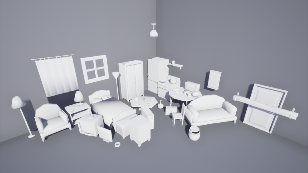 The models are scaled to be used in Unreal Engine 4 (but can be used anywhere else) and come with basic UV unwrapping - you can use them to fill up empty spaces in your levels or color code them if you are testing different functionality of different objects such as pick-ups or interactables, etc.